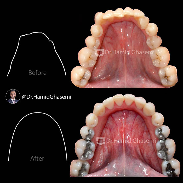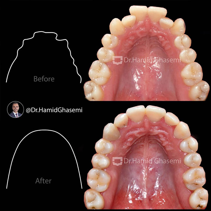 درمان ارتودنسی بدون جراحی فک و بدون کشیدن دندان در دختر خانم ۱۸ ساله همراه با کراودینگ شدید در هر دو فک با استفاده از سیستم دیمون انجام شد.
