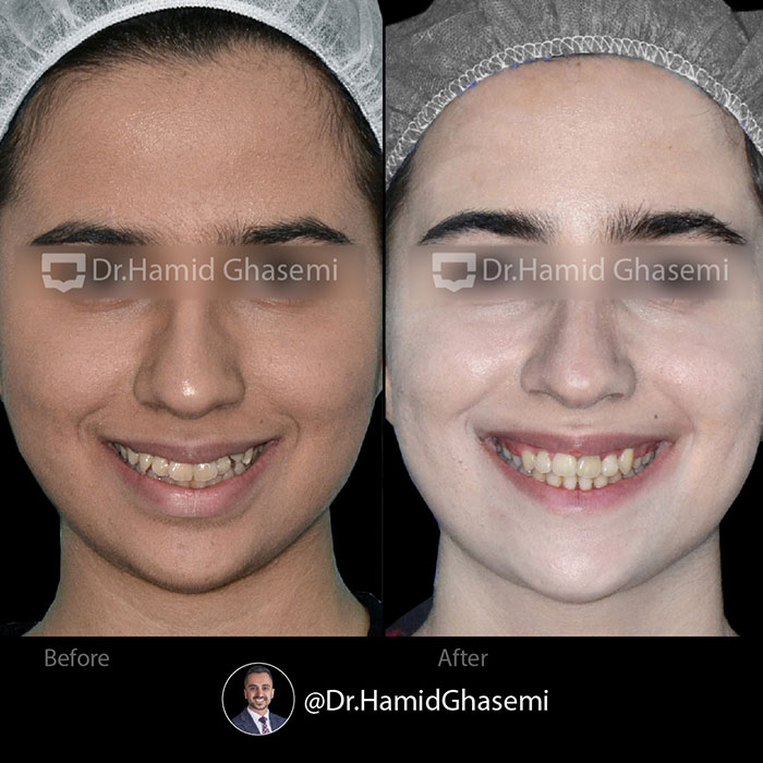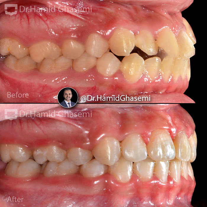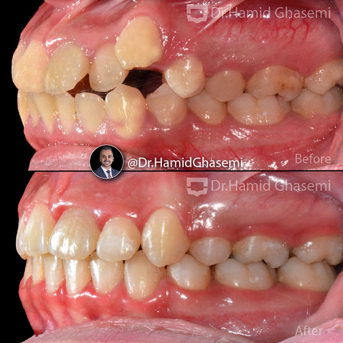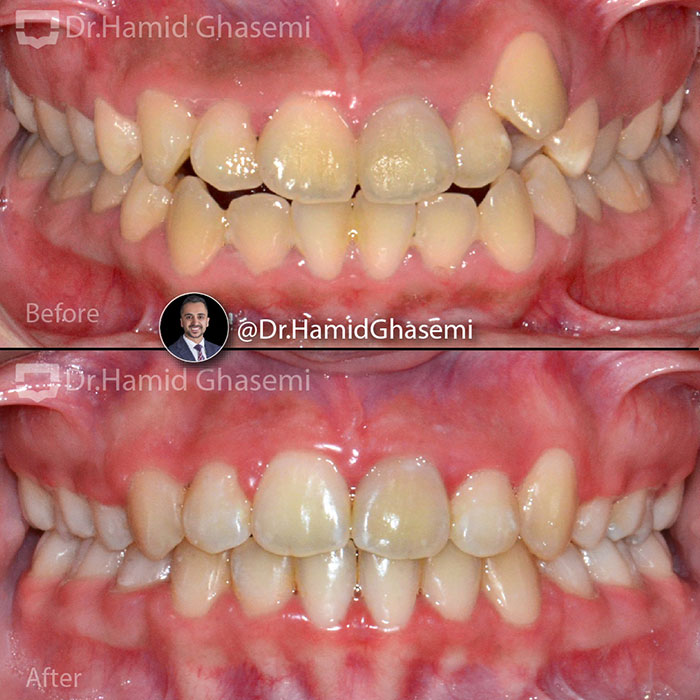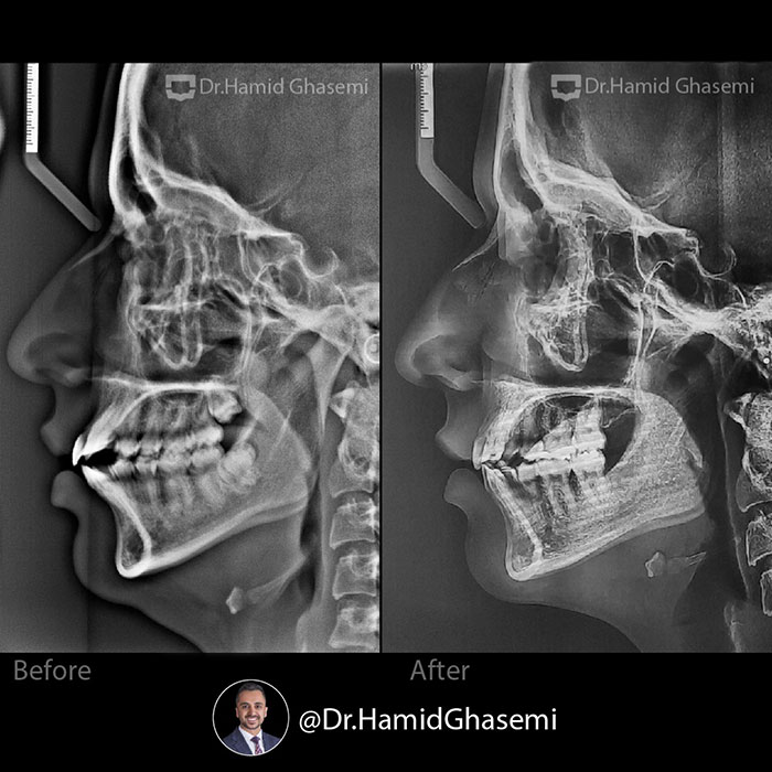 درمان ارتودنسی بدون جراحی در کیس bimaxillary dentoalveolar protrusion (جلوزدگی فک بالا و پایین) با کشیدن دندانهای پرمولر دوم در مدت ۲۰ ماه انجام شد. بهبود بافت نرم صورت و حالت لبها در نمای نیمرخ فتوگرافی و رادیوگرافی لترال کاملا مشهود است.