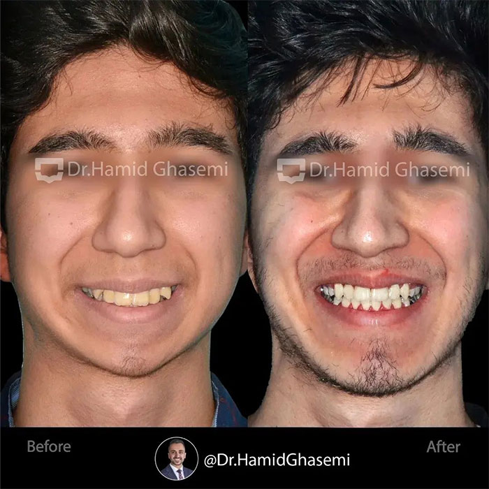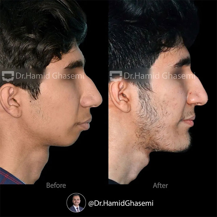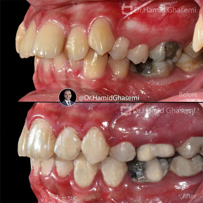 ارتوسرجری در کیس‌کلاس ۲ همراه با کمبود رشد شدید فک پایین و چانه.