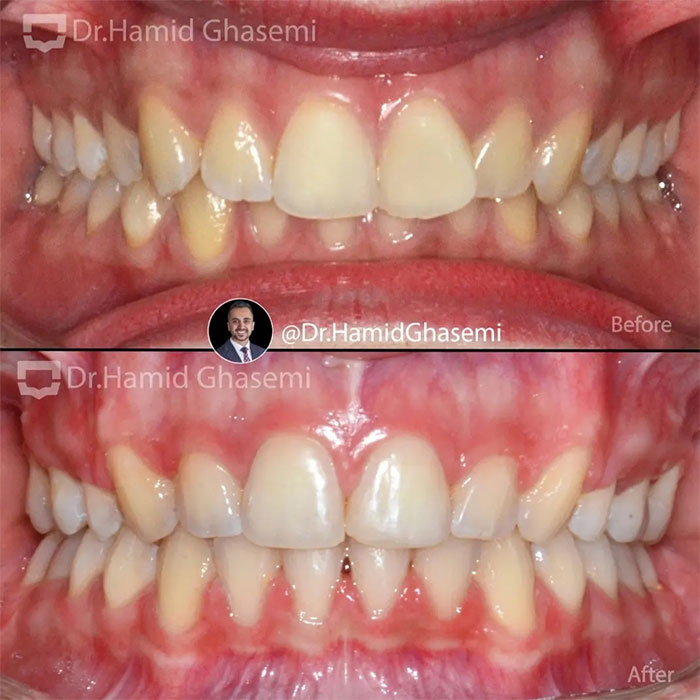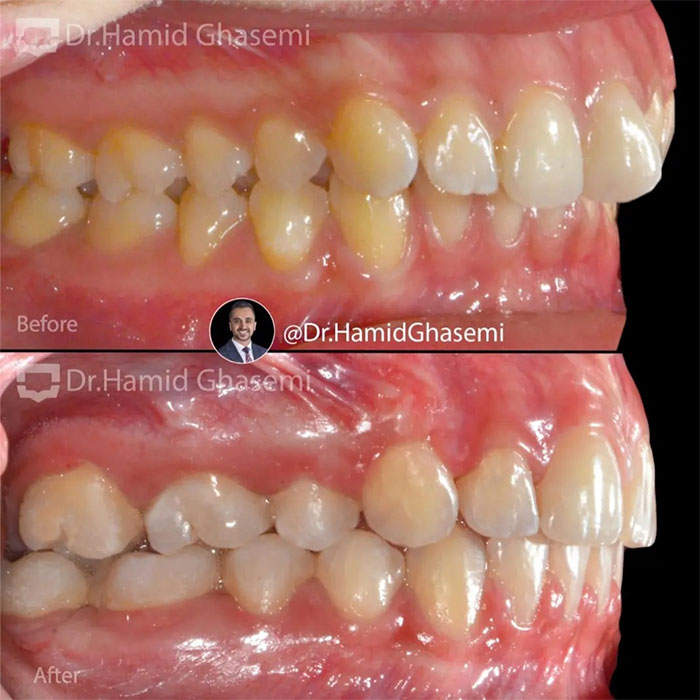 درمان ارتودنسی در کیس کلاس ۲ همراه با دیپ بایت شدید در مدت ۲۰ ماه انجام شد.
