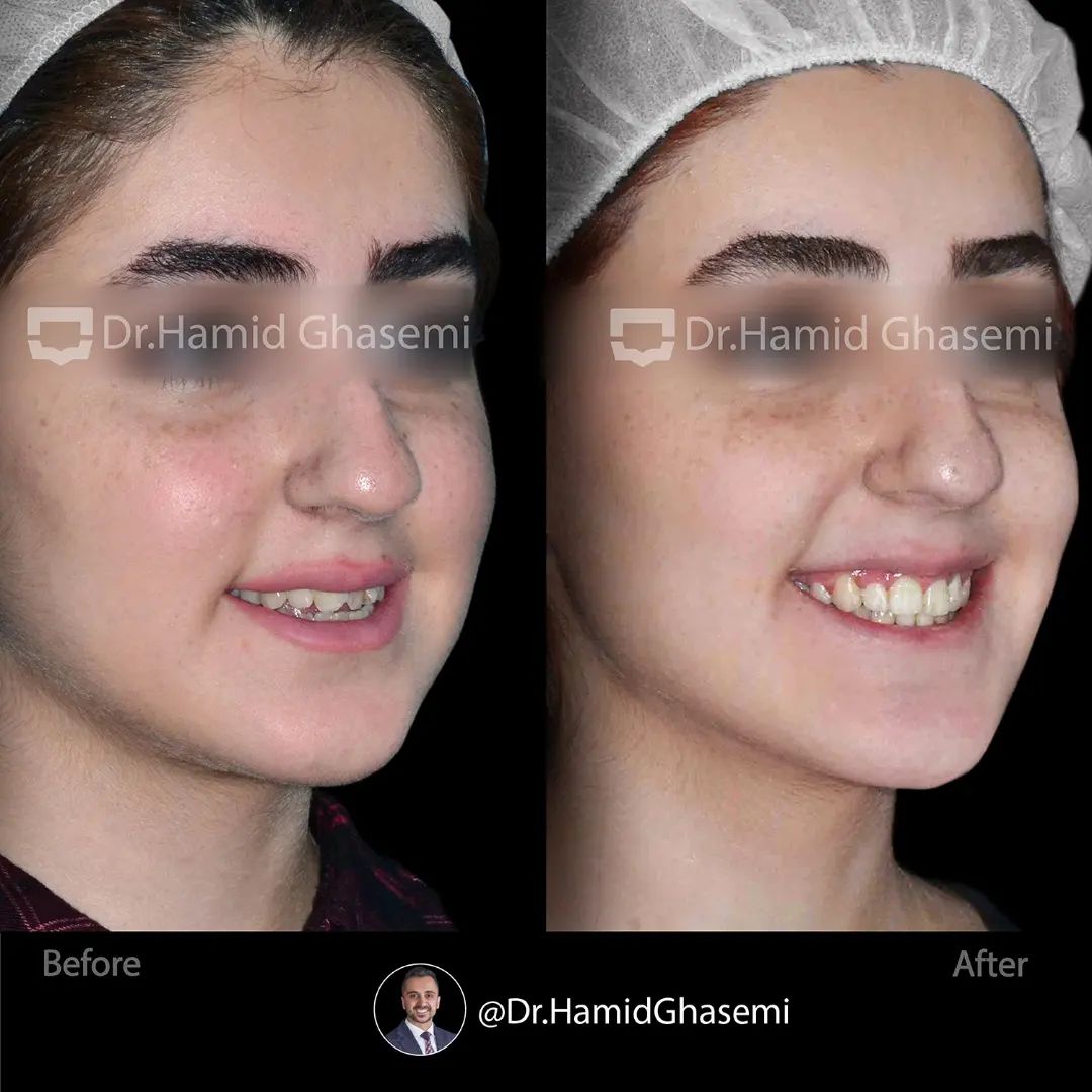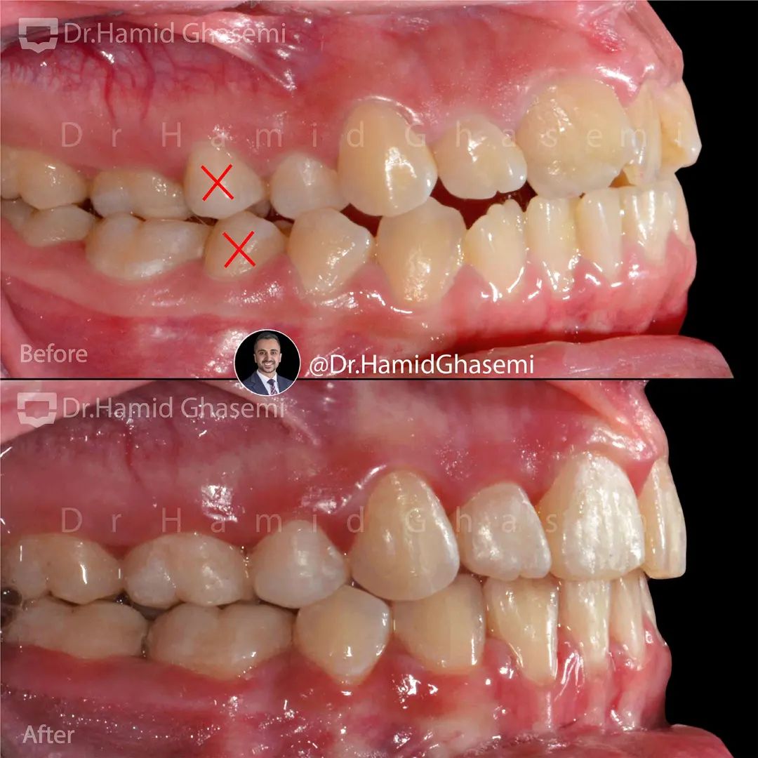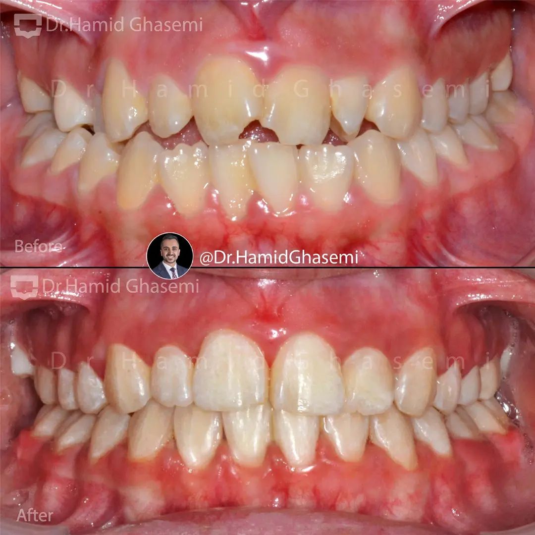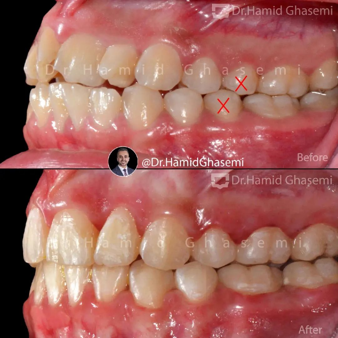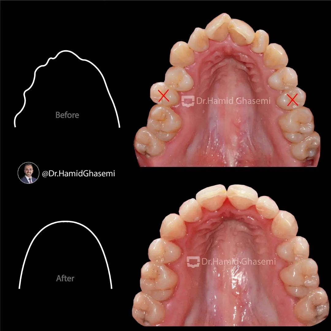 درمان ارتودنسی بدون جراحی فک در کیس اپن بایت همراه با تنگی شدید فک بالا.